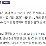 리스트의 값을 하나하나 더해서 값을 추가하면 된다.문제풀이 def sumMatrix(A,B): answer = [[] for a in range(len(A))] for i in range(len(A)): for j in range(len(A[i])): answer[i].append(A[i][j] + B[i][j]) return answer # 아래는 테스트로 출력해 보기 위한 코드입니다. print(sumMatrix([[1,2], [2,3]], [[3,4],[5,6]]))
