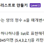 나는 리스트에 저장한 다음 reverse() 함수를 이용하는 방법을 사용했지만reversed()함수를 이용해 한줄로 줄인것도 있다.문제풀이 def digit_reverse(n): lst = list(map(int, str(n))) lst.reverse() return lst # 아래는 테스트로 출력해 보기 위한 코드입니다. print("결과 : {}".format(digit_reverse(12345))); 다른 사람의 풀이 def digit_reverse(n): return list(map(int, reversed(str(n)))) # 아래는 테스트로 출력해 보기 위한 코드입니다. print("결과 : {}".format(digit_reverse(12345)));